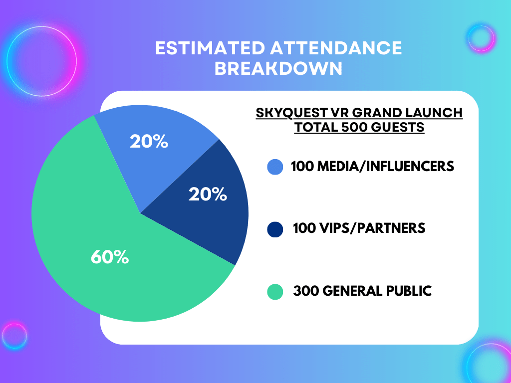 500 guests — 300 general public attendees, 100 media/influencers, and 100 VIPs/partners.