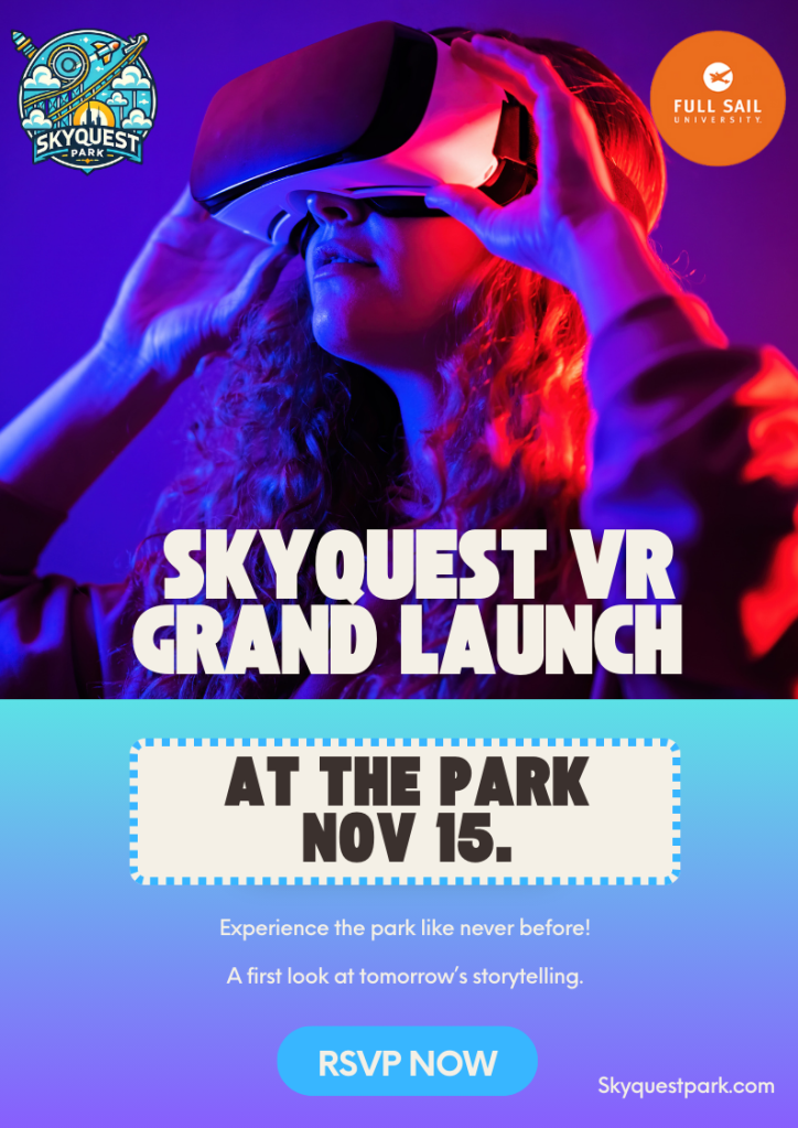 Orlando, FL — SkyQuest Park announced today that it will host the VR Grand Launch: A Night of Immersive Storytelling on Saturday, Nov. 15, from 6:00–10:00 p.m. at the park’s main plaza. The event marks the debut of SkyQuest’s first fully immersive VR attraction, featuring exclusive ride previews, entertainment, and opportunities to engage with the park’s creative team.